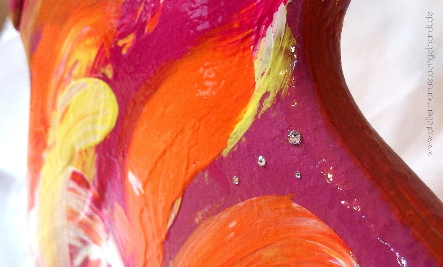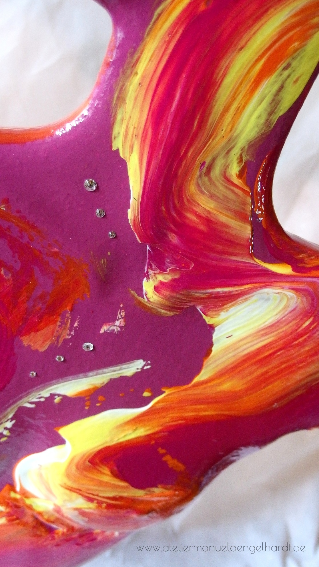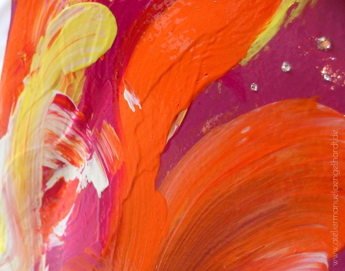 Fixiert auf Original-Acrylglasplatte. Highlights wurden mit Swarovski-Kristallen gesetzt.
